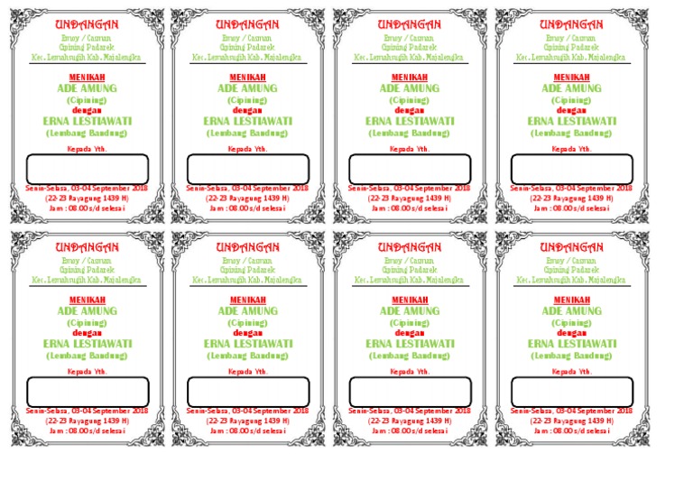 Cari produk undangan pernikahan lainnya di tokopedia. Download undangan pernikahan microsoft word v.2. Pasangan ini berhasil membuat warganet terkesan, bahkan ada juga yang berlagak jadi dosen pembimbing dengan merevisinya lo. Tetapi format yang dia punya adalah coreldraw sedangkan yang saya share disini adalah file word kawan. Walaupun kecil, foto dan nama pengantin, tanggal menikah, serta tempatnya dibubuhkan dengan jelas.